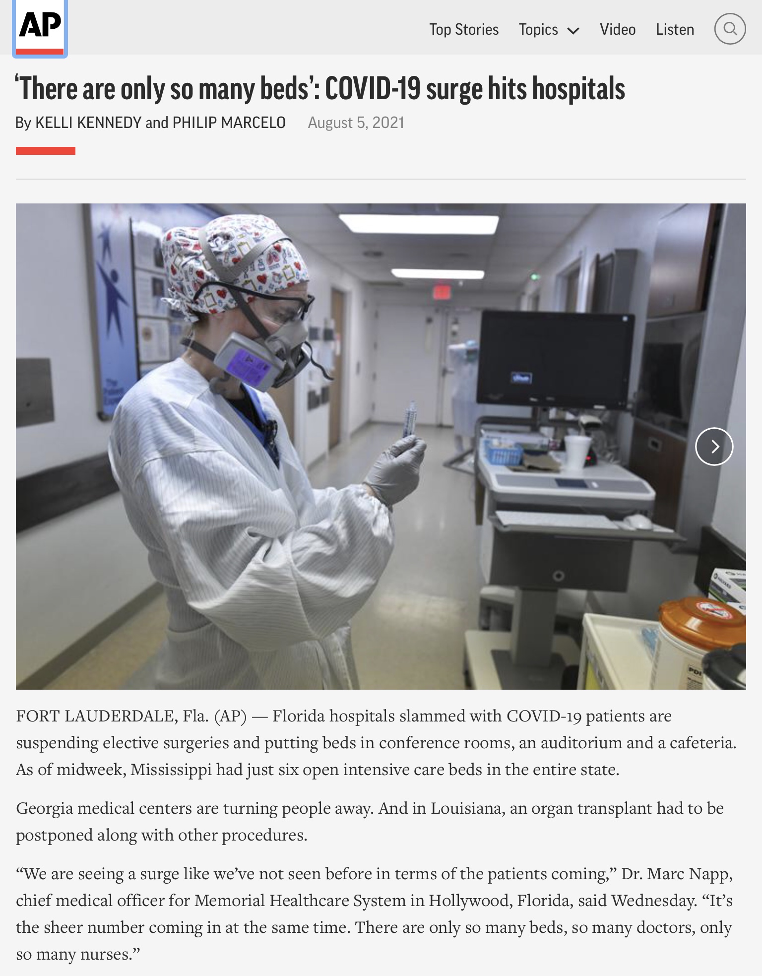 Most rational people already know that this is, unfortunately, going to be a manureshow for several Southern states in just a matter of days, and the “leadership”, if you can call it that anymore, will have to change its tune. But who knows? The cynical “leadership” in some of these states, can stubbornly cling to their falsehoods and deliberately prolong this pandemic, because there’s nothing like a prolonged pandemic to destabilize an already destabilized country. And that’s where Tucker Carlson and his ilk come into the picture with his current praises of Viktor Orban’s pathetic Hungary where the standard of living is far below the United States, and corruption and wealthy cronyism is rampant. Americans may think that by following Orban’s lead, they’re getting the 1950s back, but it’ll turn out very differently than what is currently being advertised. At this time, as the infection rates climb, we haven’t actually hit the peak with this variant, so it’s probably too soon to tell what the outcome will be. But I don’t think that in March of 2020, any of us could have ever predicted the Covid Alpha deaths of 600,000+ Americans, but maybe Jesse, or Mark can help us understand the loss of life with some of their beloved statistics, after the Delta wave sweeps over the unvaccinated Southern regions to take more lives.