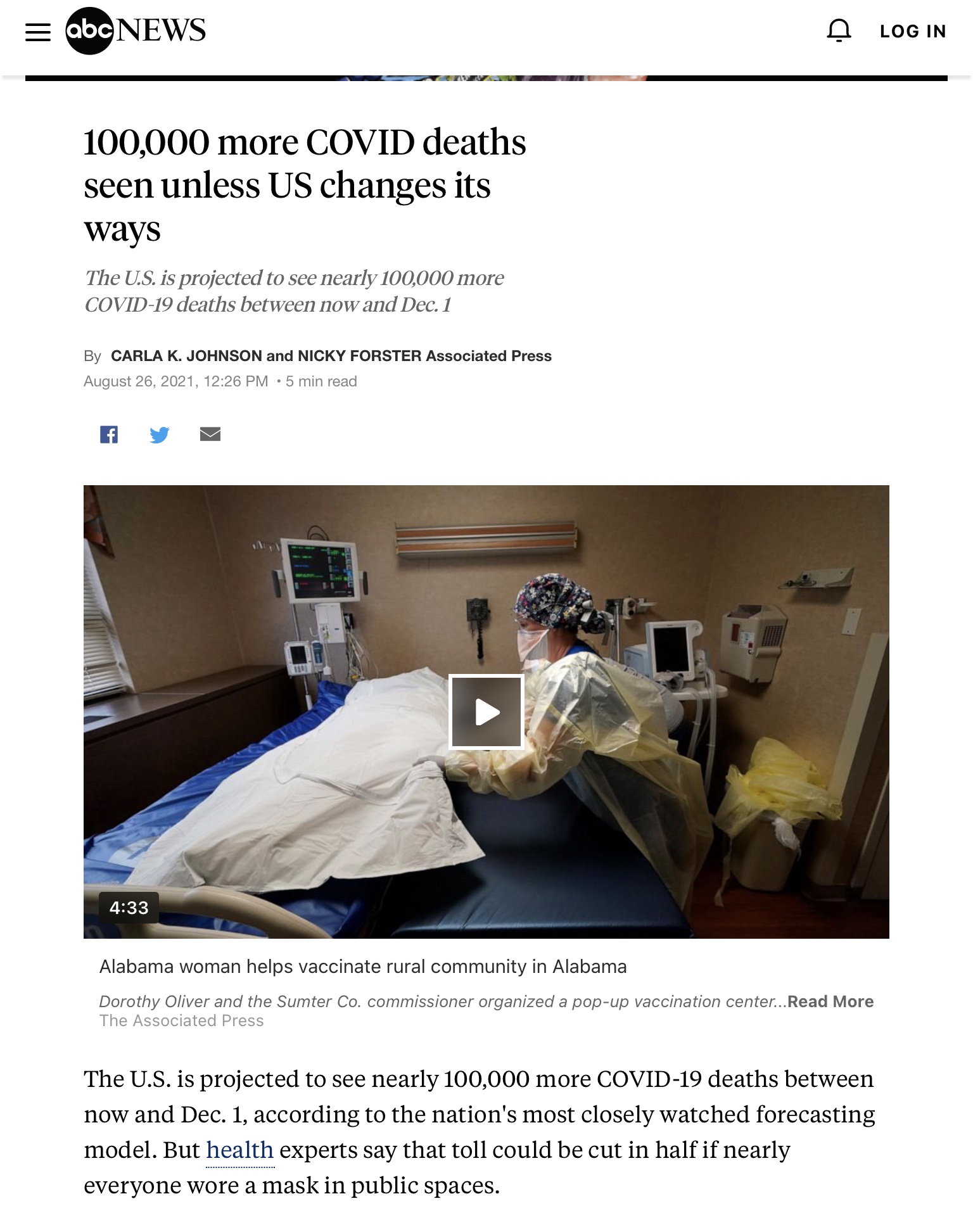 Some bigger breakthrough numbers being reported: https://www.wwlp.com/news/massachus...s-in-massachusetts-3098-reported-in-one-week/ A total of 15,739 breakthrough COVID-19 infections in people fully vaccinated against the virus have now been recorded in Massachusetts, the Department of Public Health reported Tuesday. The new total, as of Aug. 21, represents an increase of 3,098 from the previous week’s report and accounts for 0.35 percent of the more than 4.4 million fully vaccinated Bay Staters. Of those 15,739 cases, 571 people have been hospitalized and 131 have died. https://www.denverpost.com/2021/08/26/colorado-breakthrough-covid-infections-delta-variant/ The state recorded an average of 1.14 breakthrough infections per 100,000 residents on June 9 and saw a nearly eightfold increase in three months, with an average of 9 breakthrough cases per 100,000 people on Aug. 9, according to the latest data from the Colorado Department of Public Health and Environment. https://www.northjersey.com/story/n...-nj-bergen-hospital-exec-positive/5592436001/ Everyone at Bergen New Bridge, as at other hospitals, wears a mask indoors, she said, and she is “hyper-vigilant” about wearing a mask in public places. When she holds in-person meetings, participants sit 6 feet apart. She doesn’t know where she was exposed. https://www.politico.com/newsletter...-struggles-to-track-breakthrough-cases-797341 CDC STRUGGLES TO TRACK BREAKTHROUGH CASES — For the last several weeks, Biden officials and the public alike have puzzled over a key question: Just how many fully vaccinated Americans are getting infected with Covid-19? It’s a question with no precise answer, thanks to a piecemeal public health system that’s left the CDC to sift through reams of outdated and unreliable data — even as the agency is confronted with decisions that could determine the pandemic’s course, POLITICO’s Erin Banco reports. The CDC long ago ruled out tracking all breakthrough infections, in favor of focusing only on closely monitoring the most severe cases. But even with that limited scope, the information the Biden administration collects from 49 states has often proved inaccurate or absent key details.