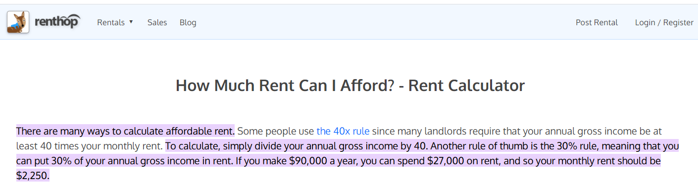 $12 * 2080 hours *2 = $48960 / 40 = $1224/month rent