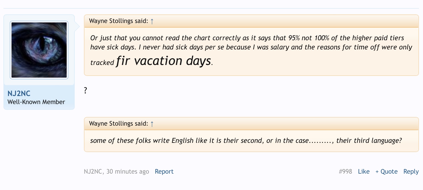 Or just that you cannot read the chart correctly as it says that 95% not 100% of the higher paid tiers have sick days. I never had sick days per se because I was salary and the reasons for time off were only tracked fir vacation days.