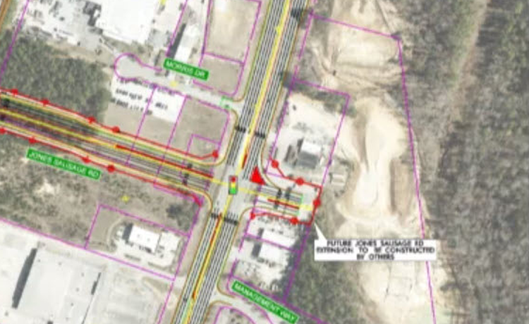 Wow, so it looks like Jones Sausage will come out onto US 70 between Morris Dr and the Auto Zone? The rendering makes it look like a 4-way intersection, but there are existing businesses on the other side of the road there. I wonder if that's just an artistic license, or if the businesses are going away and they're going to run all the way down to Timber Dr.