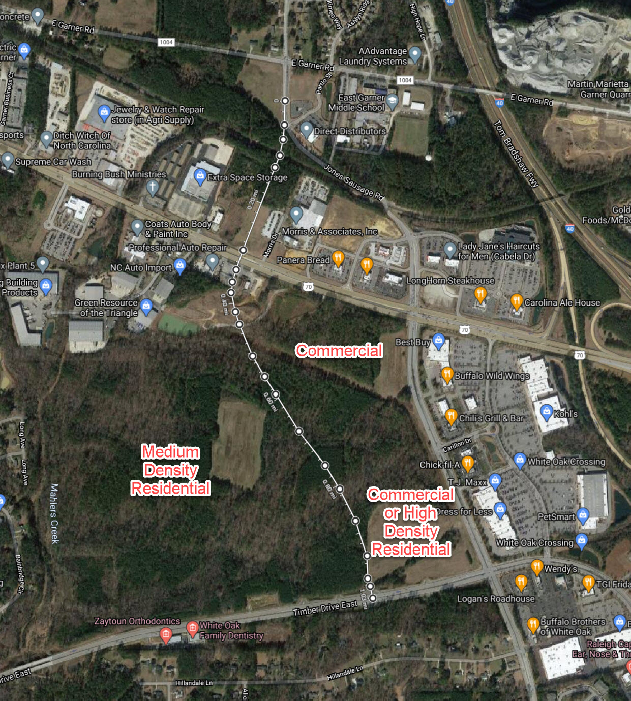 Question for you. Right where you have the line for Jones Sausage Road going through the White Oak Property and ending at Timber drive.Wasn't that at one time suppose to be a mall going in there? I know since then they cancelled building a mall since they have fallen out of fashion. And my next question is, Is there a time frame for when they are suppose to extend Timber drive across I-40 and meeting with Greenfield Parkway?