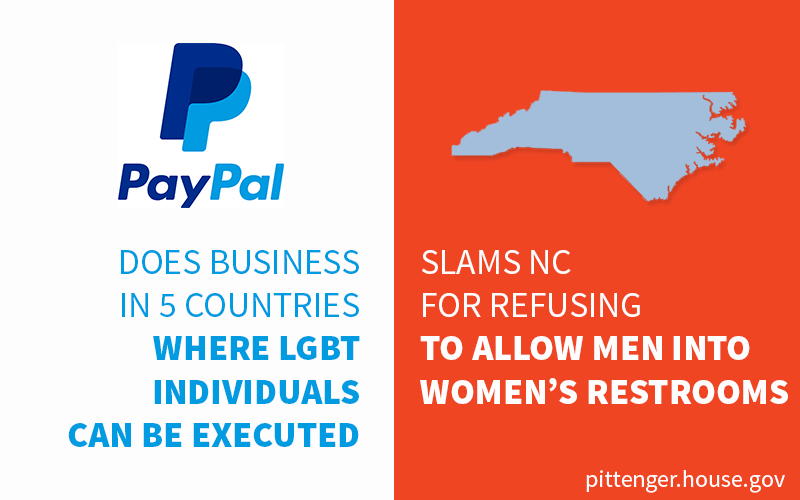Again, I am not sure how that relates to them choosing not to open in North Carolina as planned. Most US Based businesses operate in countries such as Russia and Saudi Arabia and do not condone their practices. If as in the past you looked at North Carolina as a state firmly rooted in the 21st century, this year you were reminding that some folks want us to regress as a state. If I was PayPal I would realize there are at least 20 other states that aren't moving backwards and will accommodate my customers and employees.