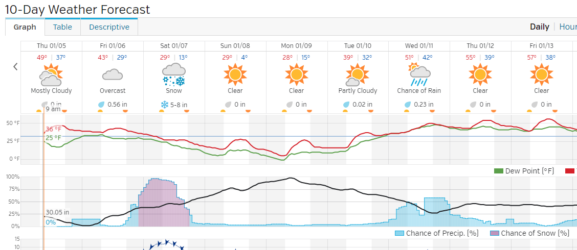 Totals updated for Clayton to 3-5". It's supposed to stay below 32F (freezing) from about midnight on Friday night through about noon on Tuesday. Dropping as low as about 8F.