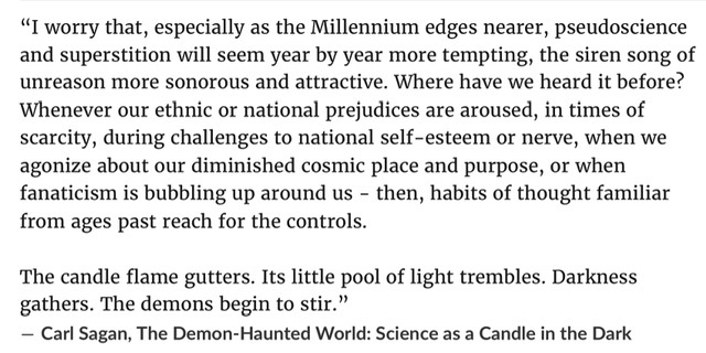 Prescient fellow that Sagan. It’s good to know that people like this exist(ed) in all walks of life.